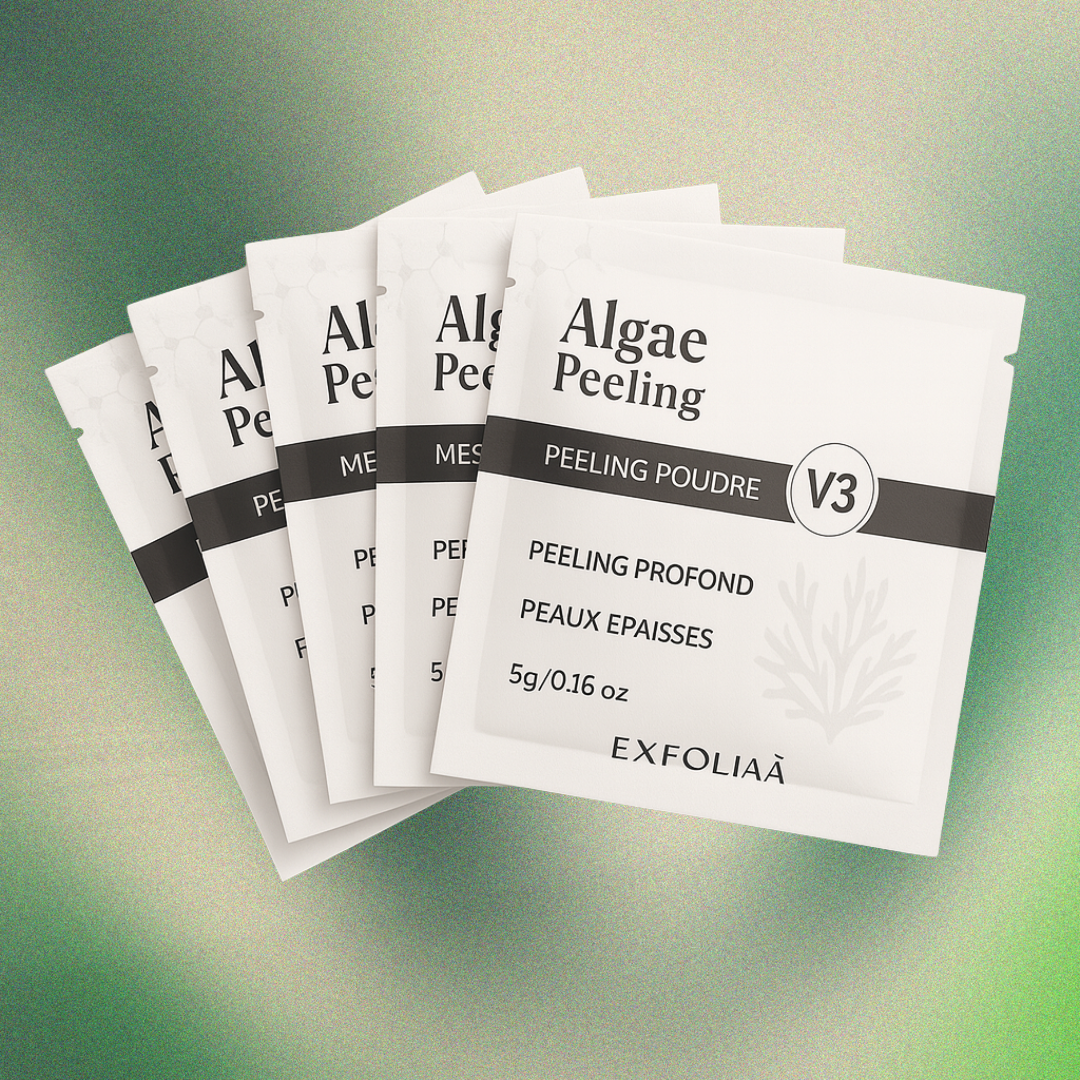 Le Peeling Algae V3 est un peeling moyen Ă haute concentration, formulĂ© Ă base dâalgues marines micronisĂ©es et de spicules naturelles.